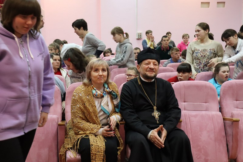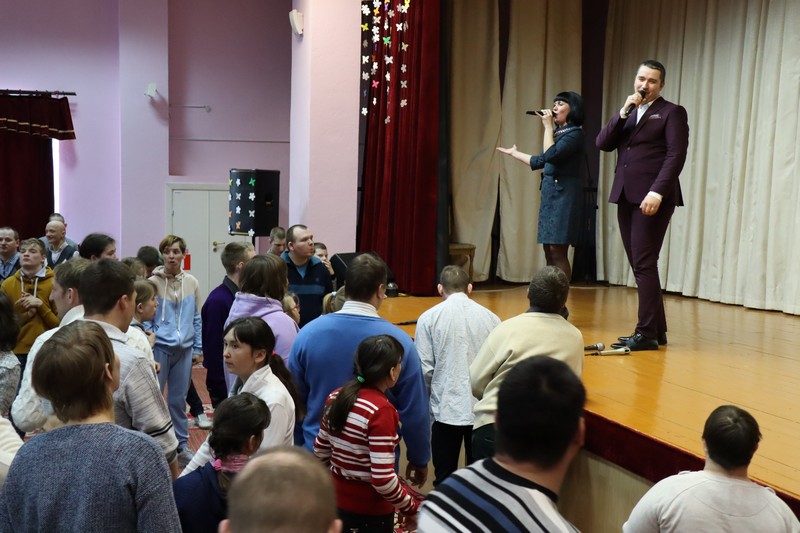 В завершение встречи заместитель директора Анжела Николаевна Рымашевская поблагодарила Ивана Листова и Наталью Хохомову за прекрасный концерт и доставленные положительные эмоции всем присутствующим. Встреча была организована Фондом имени преподобной Евфросинии Полоцкой. Также фонд доставил в дом-интернат одежду и обувь от Красного Креста Советского района г. Минска.